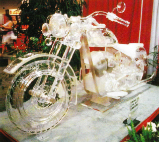 Crystal Craft has manufactured a 1-1 scale full size replica Harley Davidson motorcycle out of acrylic with all moving parts, one-of-a-kind!